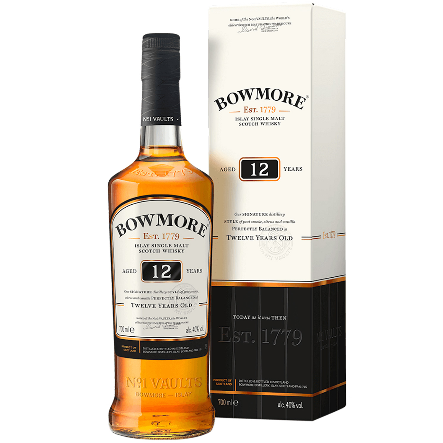 - Besondere Merkmale: Alles was Bowmore® ausmacht – rauschende Wellen, windgepeitschte Landschaften und die Weitergabe der Traditionen von Generation zu Generation – findet sich in diesem 12 Jahre alten Whisky in Komplexität und perfekter Ausgewogenheit wieder. Leichte Limone und süßer Heidehonig komplementieren den für Bowmore® so typischen Anflug von Torfrauch und führen zu einem delikaten, lang anhaltenden und weichen Abgang.