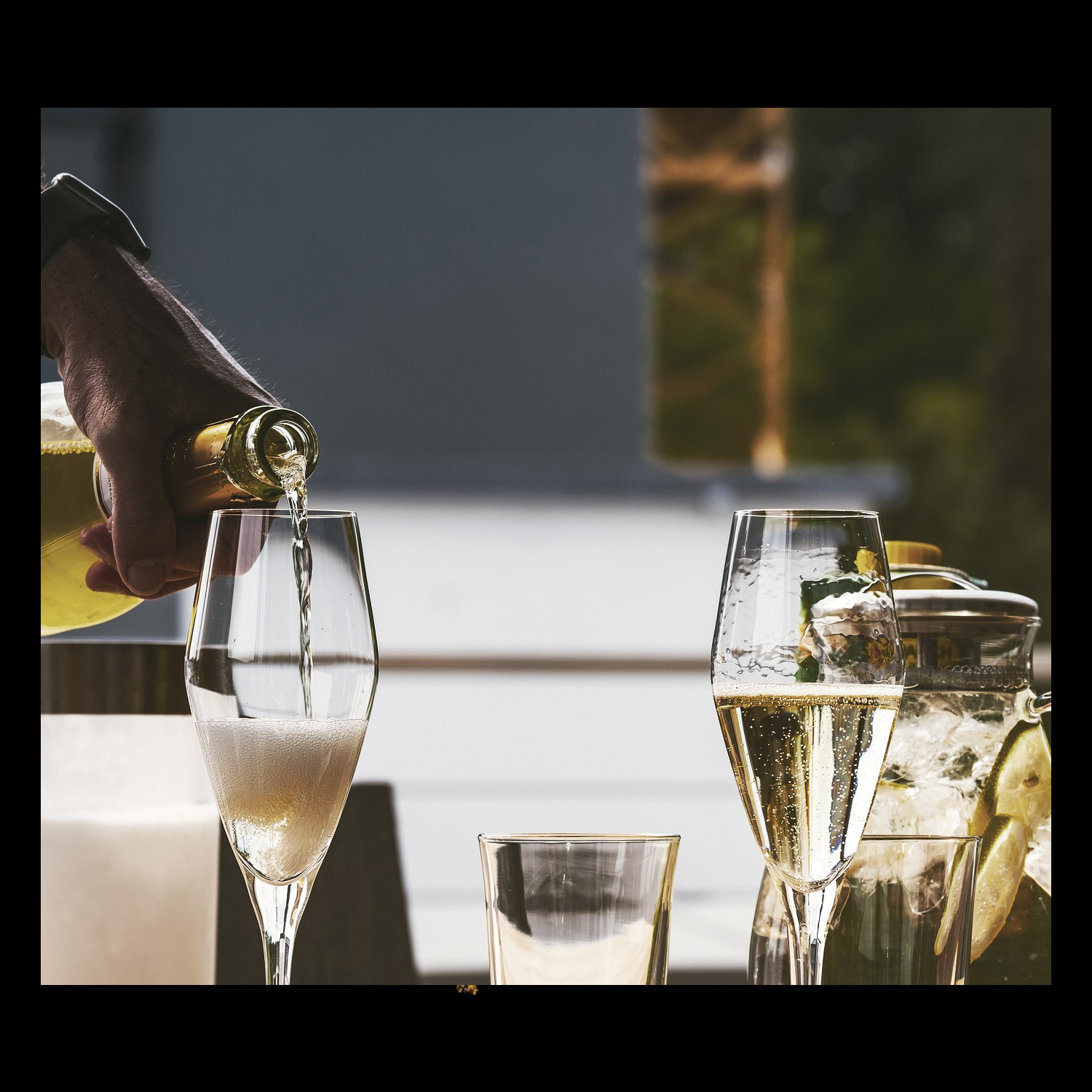 Champagne Louis Roederer Cristal mit 12 % vol. und unerreichtem langem Abgang. Er wird nur in des besten Jahren produziert und reift für sieben Jahre auf der Hefe.
